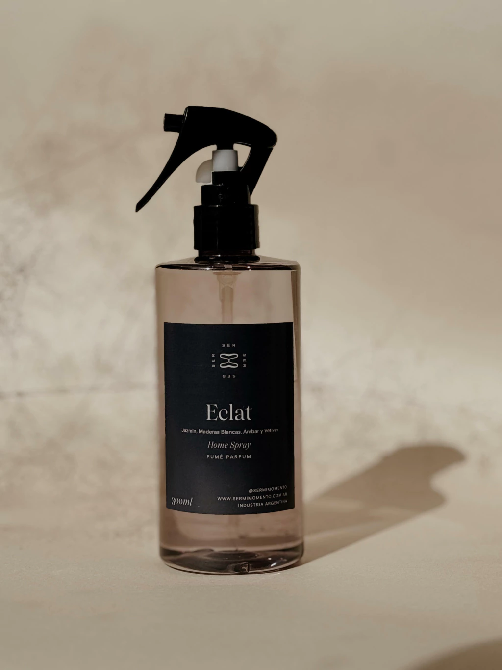 Especificaciones: Home spray con atomizador en envase de PET color gris Fumé de 300 ml. 3 fragancias Fumé Parfum para elegir: Zingiber, Eclat y Zephyra.