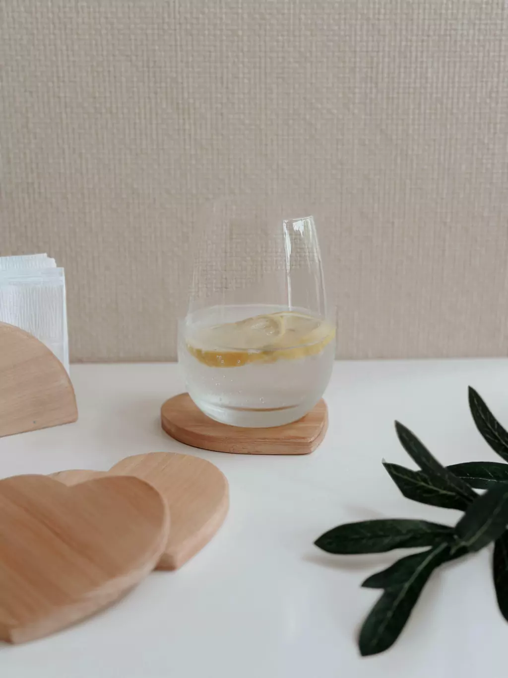 Posa vasos de madera para evitar que nuestra mesa se marque y a la vez, asignarle uno a cada invitado. Además es otro complemento que decora y ambienta una mesa para recibir amigos, o familia.